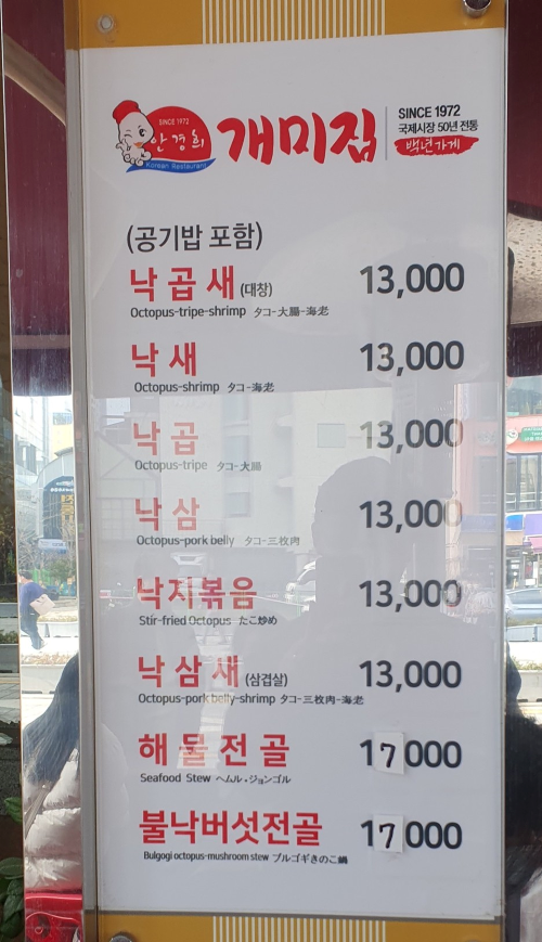 - 낙곱새: 낙지, 곱창, 새우가 어우러진 매콤한 전골 (1인분 15,000원)