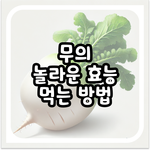 무는 다양한 효능을 가진 건강식품으로, 소화 촉진, 면역력 강화, 항암 효과 등 건강에 매우 유익해요. 무를 생으로 섭취하면 가장 많은 영양소를 유지할 수 있으며, 무즙으로 만들어 먹으면 더욱 쉽게 몸에 흡수됩니다. 무국, 무조림, 무생채 등 다양한 요리로도 무를 즐길 수 있으며, 그 효능을 극대화할 수 있어요. 이 가을과 겨울, 무의 풍부한 영양을 잘 활용해 건강을 챙기고 가족 모두의 면역력을 높여 보세요!