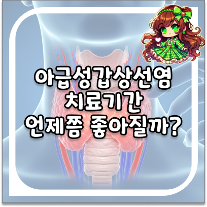 아급성 갑상선염의 치료기간은 일반적으로 6주에서 3개월 정도 소요됩니다. 개인의 면역력, 증상의 강도, 치료 반응에 따라 달라지긴 하지만, 다음과 같은 경과를 보이는 것이 일반적입니다.