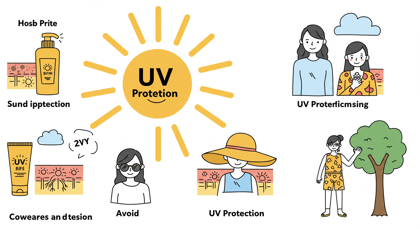 - 목·귀·두피 보호: 얇은 스카프, 챙이 넓은 모자, 분사형 선케어로 두피 케어.