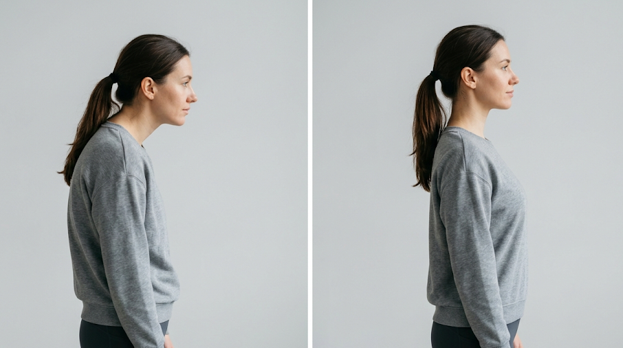 가장 기본적이면서도 강력한 동작은 바로 '치인(Chin-tuck)'이라고 불리는 턱 당기기입니다. 이 동작은 목의 깊은 곳에 위치한 심부굴곡근을 강화하여 머리의 위치를 정상적으로 되돌려 줍니다.